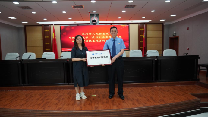 活动中,学院与天门市人民检察院进行了法学教育实践基地挂牌仪式。曾志军检察长和才惠莲副院长签订了《结对共建协议书》,共同为法学教育实践基地正式揭牌。