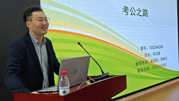 何众维现就职于武汉市生态环境局,他结合自己的实际工作经历,分别从政策变化、报名渠道、价值定位和应试经验四个方面进行了全面而细致的分享,并着重强调了方向选择的重要性,建议同学们提前规划公考方向,了解考试政策和要求,从而有针对性地进行备考。
