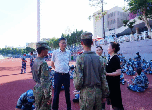 徐岩书记与带队教官亲切交流,详细询问训练进度与新生适应情况,对教官们科学施训、悉心指导表示感谢。