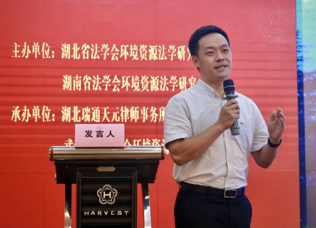 第三阶段学术研讨,环节一:环境执法与环境司法的新发展,该环节由武汉大学教授,湖北环境资源法学会副会长柯坚教授和中南林业科技大学教授、湖南环境资源法学会副会长周训芳教授主持发言,湘潭大学法学院副院长,湖南环境资源法学会副会长吴勇作《新兴信息技术赋能环境治理风险样态与制度回应》专题发言、湖北经济学院王腾副教授作《环境监管执法中的随机执法机制创新》专题发言、中南林业科技大学社科处处长蒋兰香作《环境行刑衔接中亟需破解的几个难题》专题发言、武汉大学环境法研究所讲师吴宇作《环境法律责任的威慑效应及其实现》专题发言、华中师范大学教授,湖北环境资源法学会副会长王清军教授作《环境行政公益诉讼中行政不作为的审查基准》专题发言、湖北师范大学讲师周勇飞作《环境侵权惩罚性赔偿的适用限制》专题发言。环节二:多元视野下的环境问题与环境法,该环节由武汉大学环境法研究所副教授,常务副会长罗吉副教授和122cc太阳集成游戏教授,湖北环境资源法学会副会长黄德林教授主持发言,湖南师范大学副教授、湖南环境资源法学会秘书长李奇伟副教授作《流域综合管理法治的历史逻辑与现实启示》专题发言、中南财经政法大学讲师吴凯作《论迁徙中野生动物的法律保护——以云南亚洲象北迁为例》专题发言、长沙理工大学姜明副教授作《设区的市环境立法的利益需求与规范空间》专题发言、华中科技大学胡帮达副教授作《国际环境法规制海洋核污染的局限及破解——以<伦敦公约>为视角》专题发言、122cc太阳集成游戏宋冬冬副教授作《自然保护地内自然资源资产特许经营的实践问题》专题发言、长沙环境保护职业技术学院陈勇副教授作《湖南省环境保护工作责任规定实施评估》专题发言。