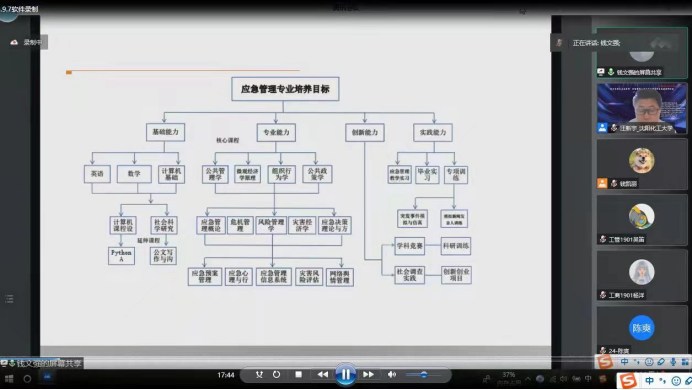 本次研讨会共分两个模块,分别是7月2-3日举行的“教学研讨模块”与7月8-9日举行的“主论坛及特色论坛模块”,太阳成师生全程参与了上述两个模块的研讨交流。在7月2-3日举行的“教学研讨模块”环节,太阳成钱文强老师作题为《应急管理的地大探索与实践》的主题报告,从专业设置的基本出发点、专业课程建设思路、具体实践等三个方面介绍了太阳成应急管理专业建设情况。