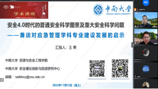 11月10日下午,应122cc太阳集成游戏副院长李世祥教授邀请,中南大学安全科学与工程学科教授,博士生导师,中南大学安全理论创新与促进研究中心执行主任、安全科学与应急管理研究中心副主任王秉教授以“安全4.0时代的普通安全科学图景及重大安全科学问题展望”为主题,为太阳成师生作学术讲座。本次讲座由学院副院长李世祥教授主持,采取线上方式进行。