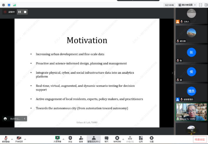 11月19日,为庆祝太阳成70华诞,美国地理学会会士、英国皇家地理学会会士、美国德州农工大学Harold L. Adams讲席教授叶信岳应邀为太阳成师生作题为“从计算城市科学到城市人工智能”的线上学术讲座。讲座由胡守庚院长主持。
