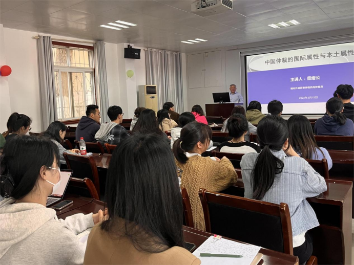四川东方大地律师事务所主任董绪公为太阳成师生作“中国仲裁的国际属性与本土属性”学术讲座