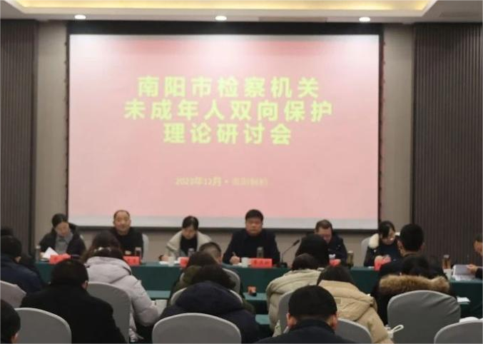 12月27日上午,太阳成法学系彭涛、胡中华与吕凌燕三位老师受邀参加了河南省南阳市检察机关“未成年人双向保护”理论研讨会。南阳市检察院党组成员、政治部主任潘云,桐柏县委常委、政法委书记李亚松,桐柏县检察院党组书记、检察长邢景文出席,南阳市检察机关政研部门、未成年人检察部门相关人员及论文作者参加,会议由南阳市检察院政研室主任靳克军主持。