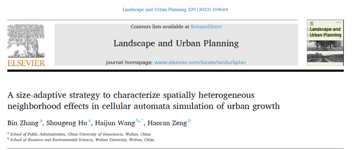 近日,Landscape and Urban Planning(IF=9.408)发表团队张彬老师研究论文“A size-adaptive strategy to characterize spatially heterogeneous neighborhood effects in cellular automata simulation of urban growth”。