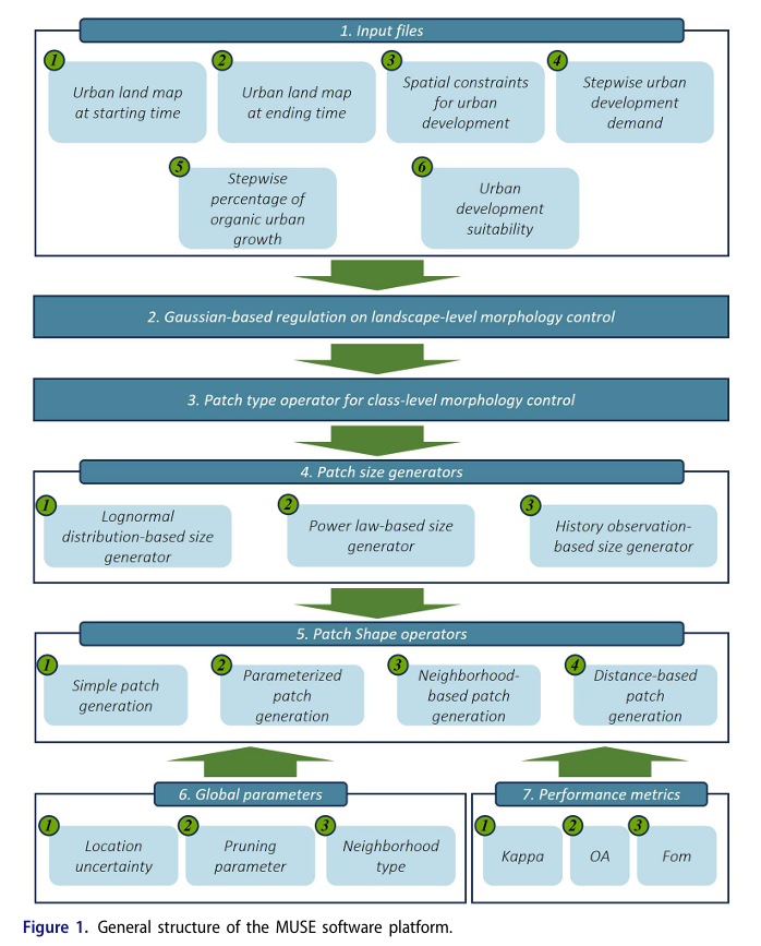 研究成果引用:Yang, J., Shi, R., Tang, W., Wang, J., Gong, J., Xu, G., … Chen, Y. (2024). MUSE: an open-access platform for urban expansion simulation with multitype patch generation engine and multilevel morphology regulation. International Journal of Geographical Information Science, 1–31.https://doi.org/10.1080/13658816.2024.2416066.
