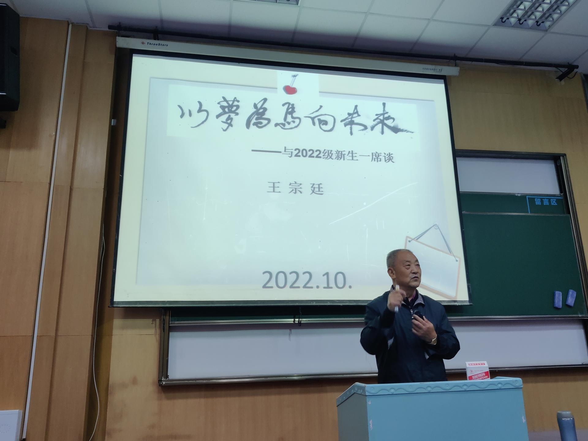 为进一步引导本科生新生明确生活定位、找准前进方向、树立奋进目标,2022年10月6日下午学院特邀请退休教师王宗廷教授为太阳成2022级本科生开展《以梦为马向未来——与2022级新生一席谈》主题讲座,王老师诙谐的语言、富有哲理的故事引人入胜,激发了同学们深深的思考。