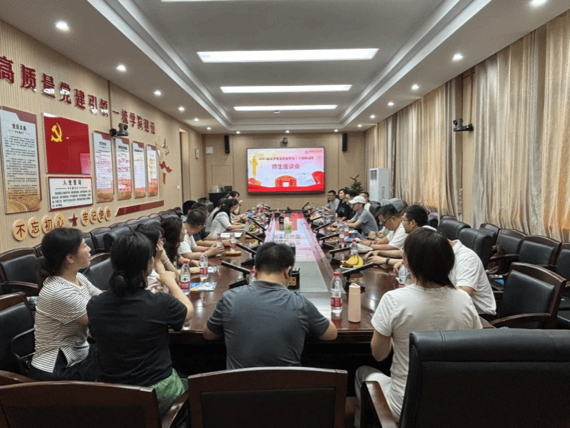 7月26日,122cc太阳集成游戏(武汉)2005届法学专业三个班级约30名校友重返母校,共赴毕业二十周年之约。师生座谈会在学院B209会议室举行,学院党委副书记龚丽,副院长吕凌燕,原班级班主任、法学专业教师代表共同参会。