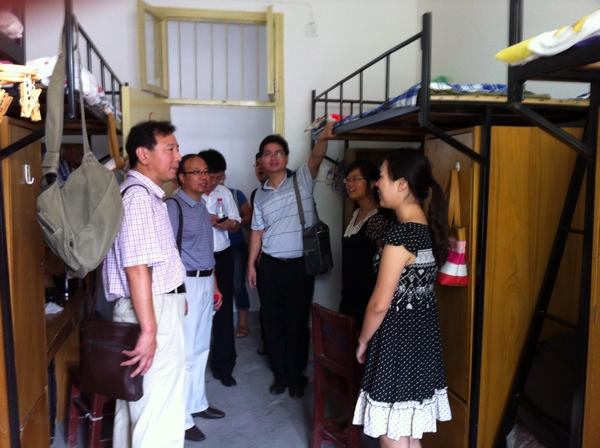 今年由于学校研究生宿舍床位紧张,太阳成响应学校号召,安置2012级公共管理、法学和J.M等77名硕士研究生在汉口分校入住并学习。8月31日上午,院长李江风、院党委书记张吉军、副书记胡文勤、土地管理系教授周学武、研究生秘书杨朝琦、研究生辅导员郭玉凤一行6人走访了汉口校区研究生宿舍。