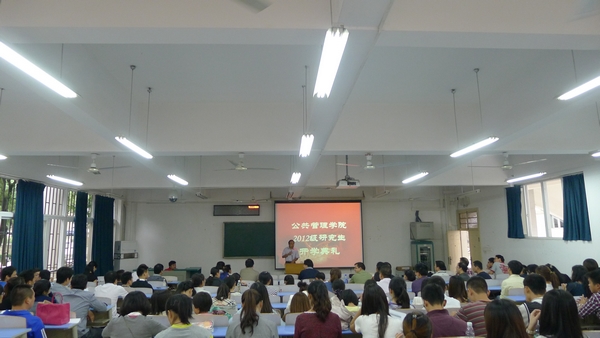 在两位老师具有建设性及指导性的发言之后,研究生新老生代表也发表了自己的感言。来自2011级土地资源管理专业向敬伟同学为新生们讲述了许多学习生活上的宝贵建议并感谢学校的栽培和养育,来自2012级法学专业王峰同学则期待着更多的机遇和挑战,希望能够在未来的三年里不断的完善自我,成就梦想,报效国家。在场的新生们无不仔细聆听,听到精彩之处均报以热烈的掌声。