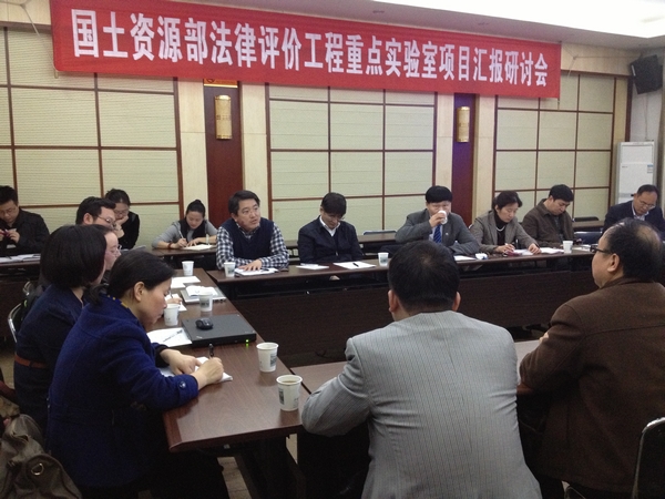 2013年4月21日上午,国土资源部法律评价工程重点实验室项目研究进展汇报会在122cc太阳集成游戏(武汉)对外交流中心召开。国土资源部法律中心孙英辉主任一行,122cc太阳集成游戏张吉军书记、卓成刚副院长,重点实验室罗辉副主任等项目组的专家教授参加了汇报。122cc太阳集成游戏(武汉)成金华副书记主持了会议。