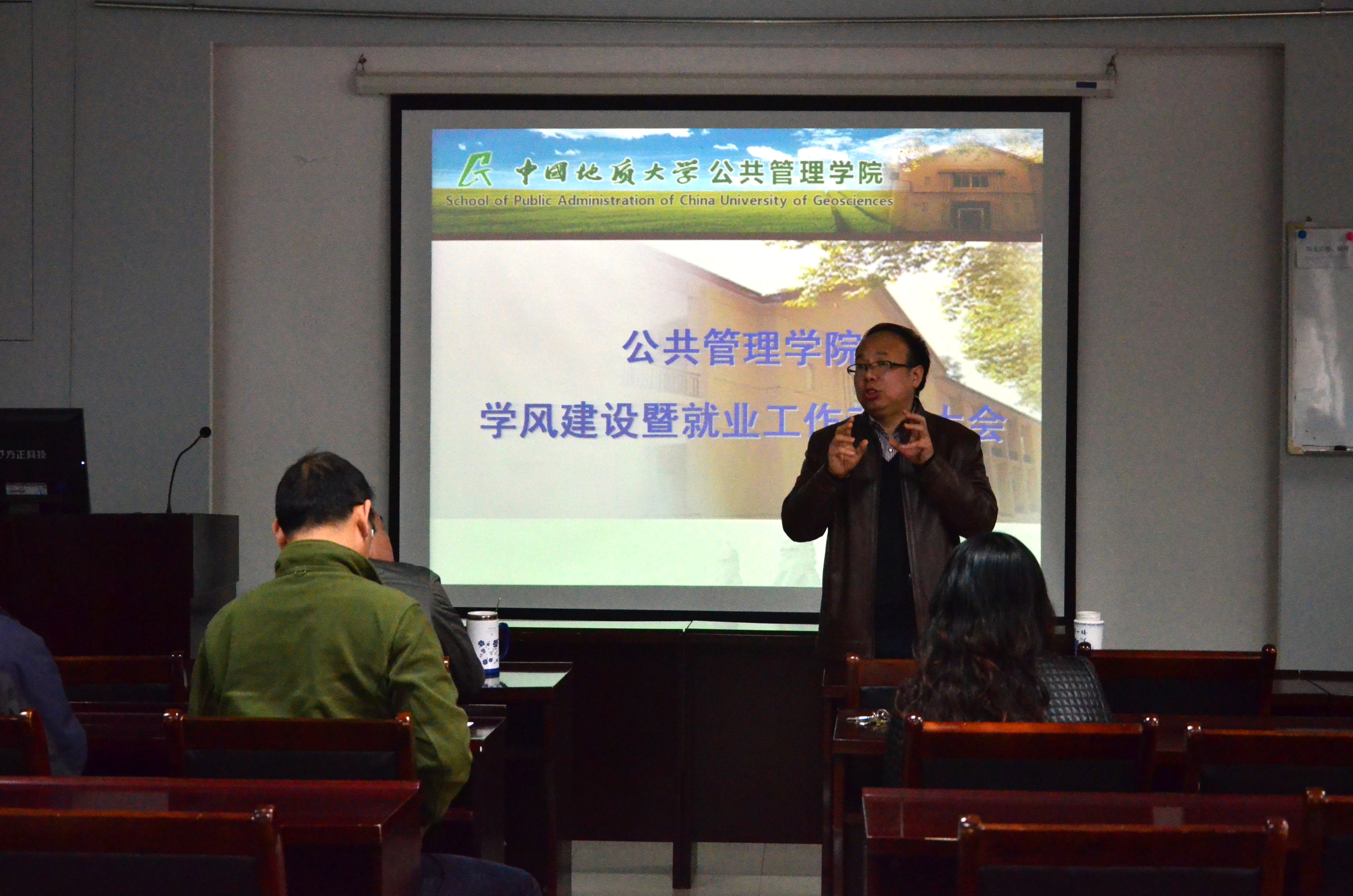 4月9日下午,122cc太阳集成游戏学风建设动员大会在国土法律评价实验室101顺利召开,参加此次会议的有学院党委书记张吉军、院长李江风,分管教学、科研、研究生工作的副院长,各系系主任及本科年级各班班主任、部分研究生导师、学工组全体老师。会议由党委副书记胡文勤老师主持。