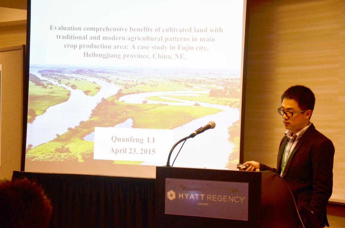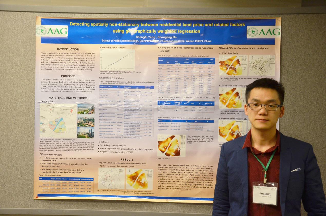 2015年4月21-25日,美国地理学家协会(AAG:Association of American Geographers)2015年年会在美国伊利诺伊州的芝加哥召开。太阳成博士生李全峰、杨剩富受到了学校研究生院“研究生国际交流与合作资助计划”及导师的联合资助,参加了本次会议。