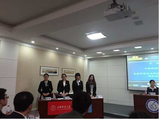 3月29日下午,法辩盟初赛。比赛围绕电商平台应/不应该为网店的知识产权侵权负责展开,太阳成为正方,李琴鸽、刘杨明珠、曹勐菲、武鑫蓉四名同学与武大辩友共同向观众展示了一场精彩的辩论赛,最终地大以5:0的优势打败武大,最佳辩手武鑫蓉。