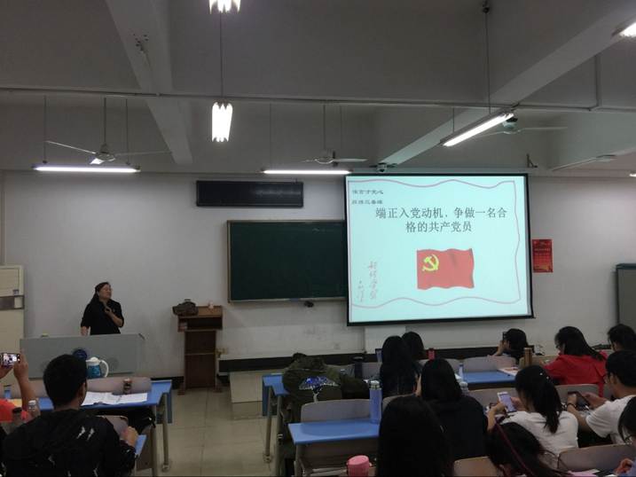 陈文武老师以“端正入党动机”为主题,指出“端正入党动机,明确入党目的”的重要性,她分析了当下校园大学生入党动机,并列举了几类常见入党动机,她强调只有为了献身共产主义事业,更好地为人民服务而要求入党,才是完全正确的入党动机,也是唯一正确的入党动机。她指出,强调入党动机是为了实现共产主义的客观需要,端正入党动机是端正入党行为的前提,是经得起党组织考验的依据,并指明了端正入党动机的基本要求和基本途径。她说,正确的入党动机形成是在不断学习、实践、逐步深化和修养锻炼过程中形成的,要成为一名光荣的共产党员,不仅要端正入党动机,更要自觉地接受党组织的培养、教育和考察,主动向党组织靠拢,正确对待党组织的考察。
