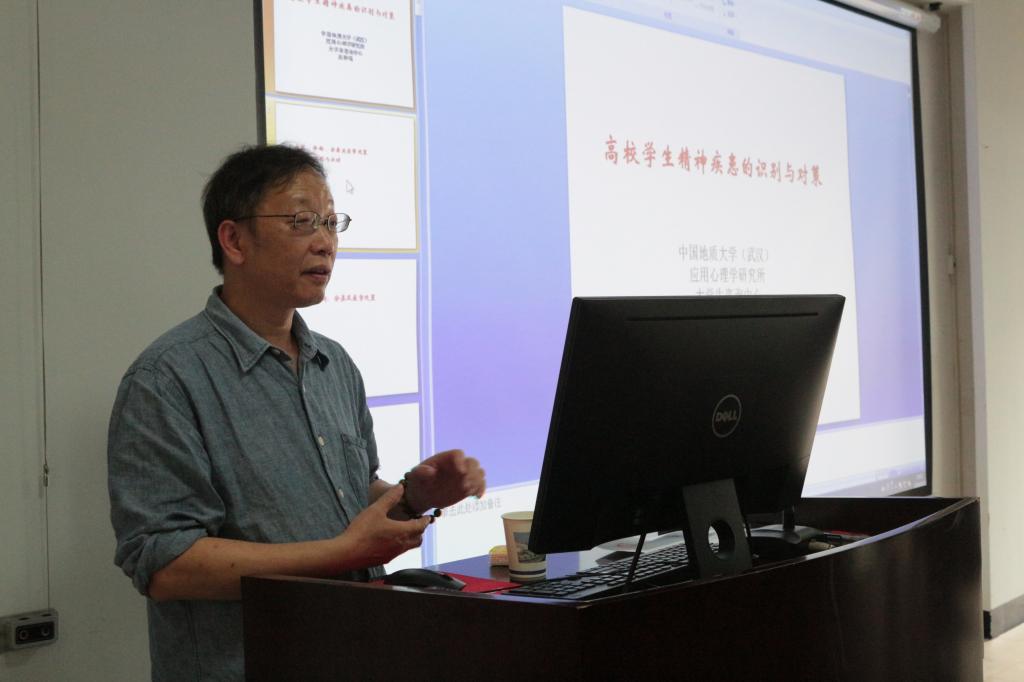 4月12日下午14:40,公管学院在公管新楼101开展了主题为“高校学生精神病患的识别与对策”的心理健康教育培训会,本次培训邀请了湖北省心理学会理事、122cc太阳集成游戏应用心理学研究所副教授吴和鸣老师为主讲嘉宾,培训会由学院党委副书记胡文勤主持,学院全体学务指导老师、班主任、各年级辅导员及各班心理委员参加了此次培训。