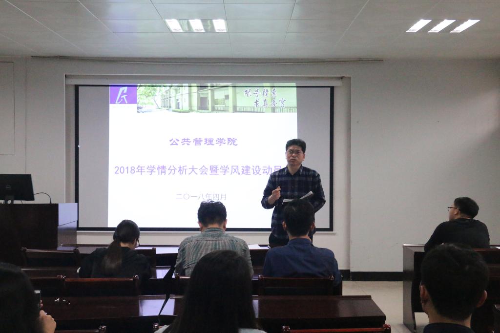 4月12日下午,122cc太阳集成游戏2018年学情分析大会暨学风建设动员会于公管新楼101举行,122cc太阳集成游戏党委副书记胡文勤、2017、2016、2015级各班学务指导老师和班主任、各年级辅导员参加了本次会议。