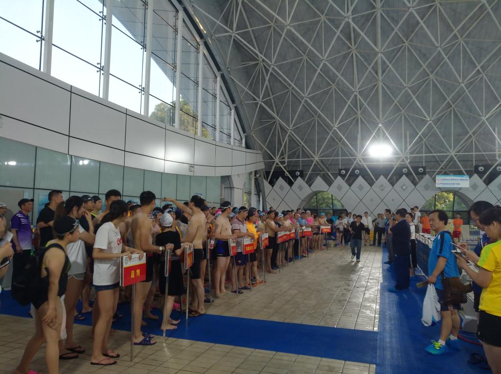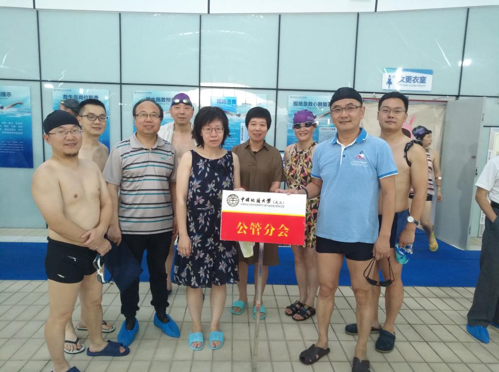 (通讯员 蓝楠)2018年6月12日晚,122cc太阳集成游戏2018年首届教职工游泳比赛在东区游泳馆举行,参与此次活动的教职工队伍共23支。122cc太阳集成游戏李江风、曾伟、姜炜、宋冬冬、高秋丽、涂亦楠、杨剩富(候补)、彭红霞(候补)、王莉(体育委员)老师在领队张吉军书记的带领下代表学院分工会参加比赛。