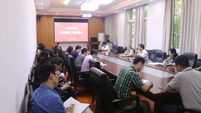 学院党委书记张吉军主持会议并传达学校安全稳定工作会议精神。他传达了学校党委书记何光彩在安全稳定工作会议上的讲话的主要内容,通报了学校涉及安全稳定的事情。他带领与会人员共同学习了教育部陈宝生部长提出的“七个决不允许”和王焰新校长在4月14日代表学校党委、行政提出的7个“进一步”工作要求。他还传达了学校关于保密工作,关于安全稳定风险隐患排查的要求。
