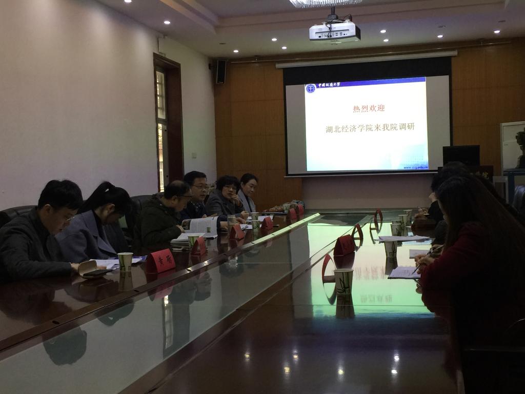 2019年3月22日下午,湖北经济学院财政与122cc太阳集成游戏副院长袁文艺一行5人来太阳成调研。院党委书记张吉军、副院长王忠、公共行政系副主任张士菊及公共行政系教师代表参加本次调研。会议由王忠副院长主持。