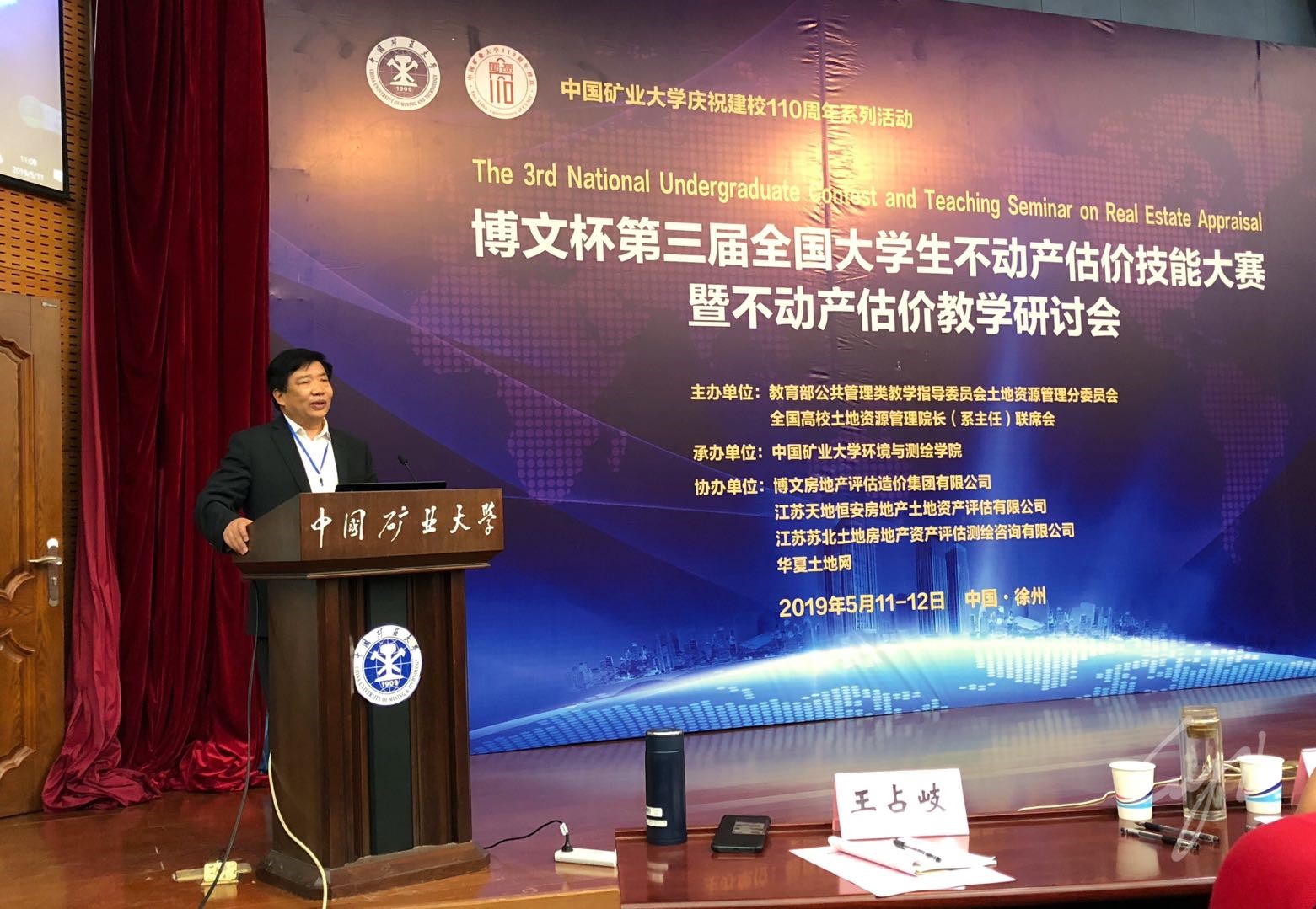 5月11日至12日,“博文杯”第三届全国大学生不动产估价技能大赛暨不动产估价教学研讨会在中国矿业大学召开。来自中国人民大学、四川大学、浙江大学、122cc太阳集成游戏(武汉)、中国矿业大学等35所高校的37支参赛队伍,近300名师生参会。教育部公共管理类教学指导委员会委员、太阳成院长王占岐教授率队参与此次活动,主持不动产估价教学研讨会并担任第一分赛场评委组组长与总决赛评委组组长。