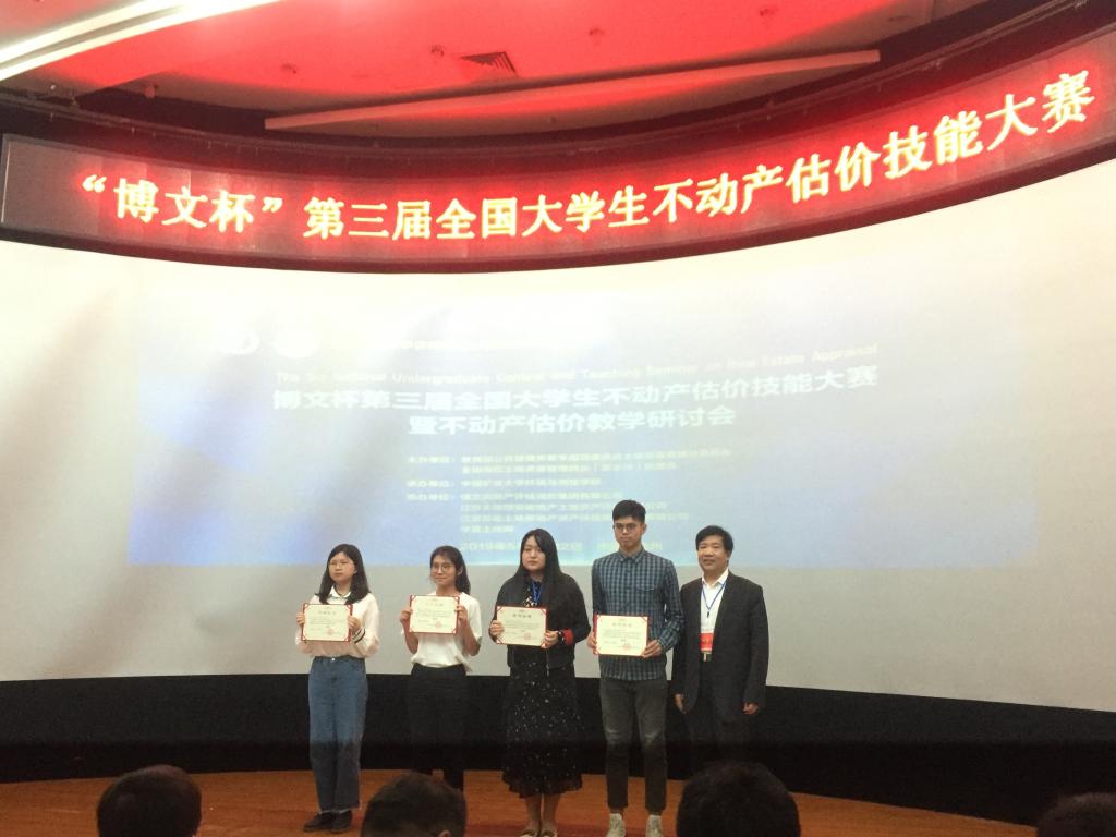 本届全国大学生不动产估价技能大赛现场参赛队伍共有37支,其参赛作品均为经专家外审后在全国范围内遴选的优秀作品,由太阳成龚健教授指导,土地资源管理专业本科生韩正康、欧嘉婵、管晨悦、刘沛辰团队的参赛作品位列其中。经过激烈角逐,首次参加此类大赛的太阳成代表队提交的作品“鄂州市梧桐湖新区东沟镇鲊州村(2015)010号集体经营性建设用地(工业用地)、(2018)016号集体经营性建设用地(居住用地)土地使用权价值评估”荣获三等奖,为提升太阳成大学生不动产估价实践技能积累了宝贵经验。