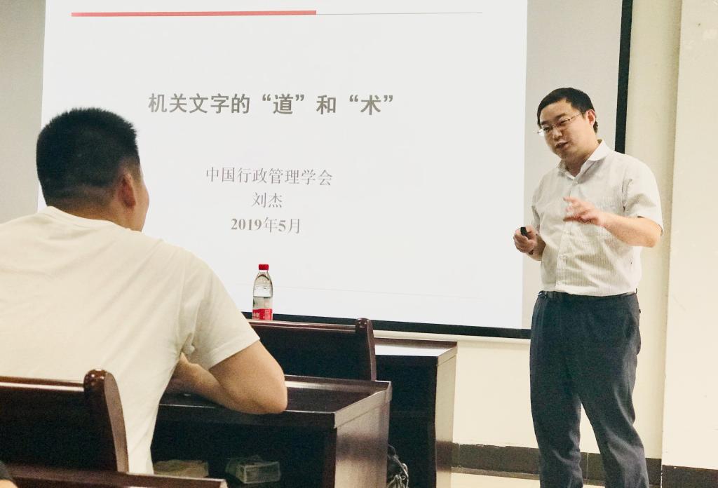 中国行政管理学会刘杰博士作题为“机关文字的‘道’和‘术’”的报告,有针对性地对现场MPA学生进行了学术探讨。刘博士结合自己在中央机关工作实际,从“立政之道、立身之术”、“为文之道、作文之术”、“内化之道、外化之术”三个方面引经据典为全体师生带来了一场精彩的学术交流。在讲座间隙,刘博士让MPA学生现场进行“讲座点评”、“班委述职”,三名学生临场发挥精彩,总结到位,获得刘博士赞许,赢得了现场阵阵掌声。