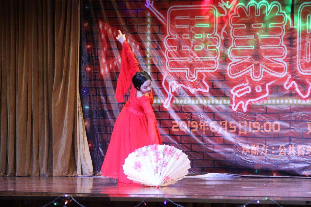 晚会在欢乐的气氛中开始,首先出场的两位歌手合唱了一首《路灯下的小姑娘》,悠扬的歌声、明快的节奏让全场气氛迅速升温。舞蹈“自作多情”,复古优雅的旗袍和美好曼妙的舞姿,舞者们在律动之中吹来一股浓浓的上海滩香风。“护花使者”节目在人数和舞蹈上则声势浩大,粤语配乐港味十足,女生们活力四射,如娇艳的花朵一般在舞台上尽情绽放,围绕她们的男生在“旋转、跳跃、不停歇”中献出了他们的舞台之作。邓恬然同学的独唱《wings》,颇有些国际范儿的明亮嗓音飘扬在大厅,中途还有热情的粉丝上台献花,这是属于青春人独特的活力。