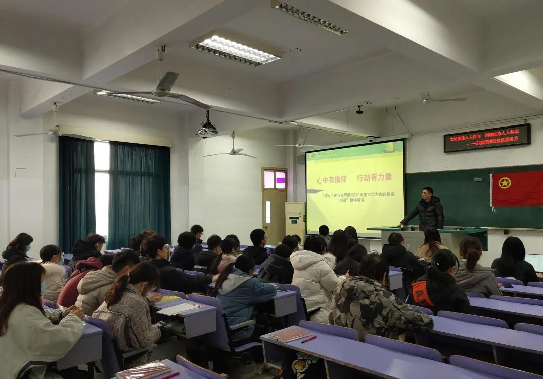 议程第四项,刘国华副书记讲话。刘书记先领学了《习近平总书记在马克思诞辰200周年纪念大会上的讲话》精神,随后以《心中有理想 行动有力量》为题和大家作交流。他说,学习永远在路上,马克思主义思想理论博大精深,新形势下当代大学生践行马克思主义须始终坚持马克思主义根本政治立场、坚定走中国特色社会主义道路的理想信念,坚定不移听党话、跟党走!公管“为公班”学员更应牢牢把控好自己的思想总开关,坚持实事求是思想路线、密切联系群众的优良作风、学业为首的根本要求,带着问题学、联系实际学,扎实越好专业和相关理论知识,更好承担起实现中华民族伟大复兴的历史责任和使命。