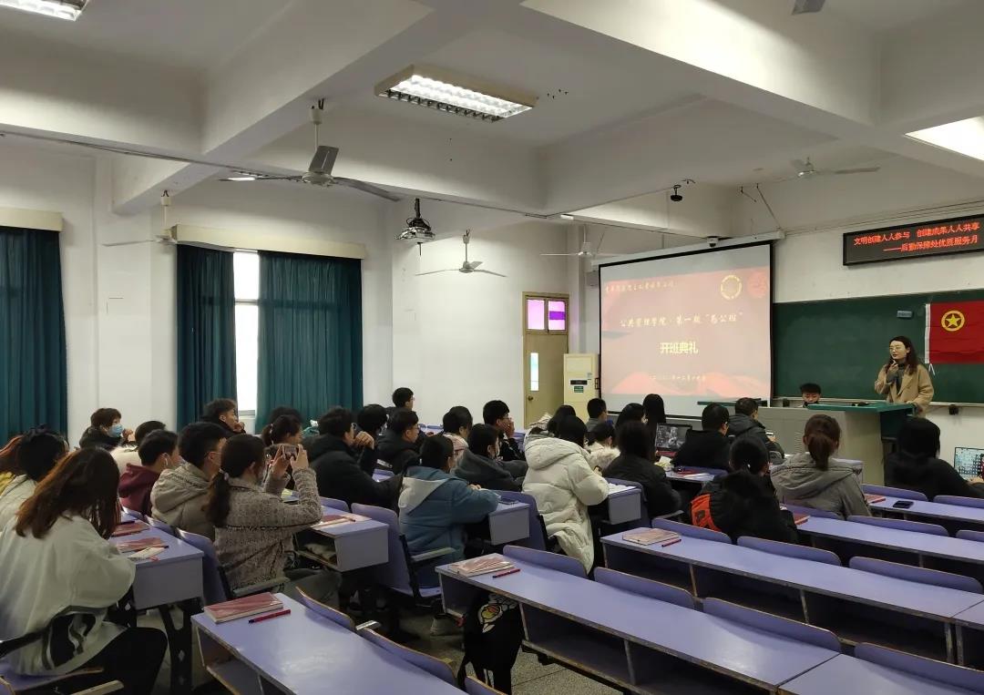 12月19日上午,太阳成第一期“为公班”开班典礼在教三楼406教室隆重举行。“为公班”是太阳成青年马克思主义者培养工程培训班,旨在围绕立德树人根本任务,结合公管学院特色,培养理想信念坚定,专业技能扎实,综合素质突出的公管学子,为国为党育才。院党委副书记刘国华老师、团委副书记李姝慧老师、学工组王青涛老师、王欣雨老师出席此次开班典礼,“为公班”全体成员参会。典礼由李姝慧老师主持,共分为八个议程。