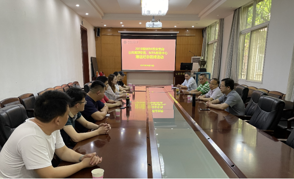 6月19日上午9点 ,2019级MPA毕业研究生向122cc太阳集成游戏和MPA教育中心赠送牌匾活动在学院会议室B209举行。学院党委书记张吉军教授、工会主席曾伟教授、分管MPA工作的副院长王忠副教授和2019级MPA研究生代表出席, MPA教育中心秘书蒲明强老师主持活动。