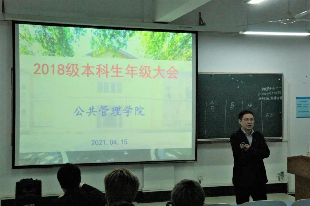 为引导2018级明确发展规划,理清发展思路,了解考研、保研、就业等发展信息,4月15日晚,学院在北综301室召开2018级年级大会。学院党委副书记刘国华、2018级本科生辅导员吴波以及2018级全体本科生参加本次大会。本次大会由辅导员吴波主持。