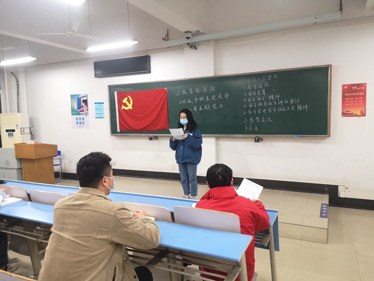 3月25日,2018级本科生党支部全体在北综204召开三月份主题党日。本次主题党日由行管一班、行管二班筹办。主题党日召开前,支部全体同志进行了体温测量,并全程佩戴口罩参会。学院党委副书记刘国华、党支部书记吴波参加本次主题党日。党支部组织委员朱嘉敏主持会议。