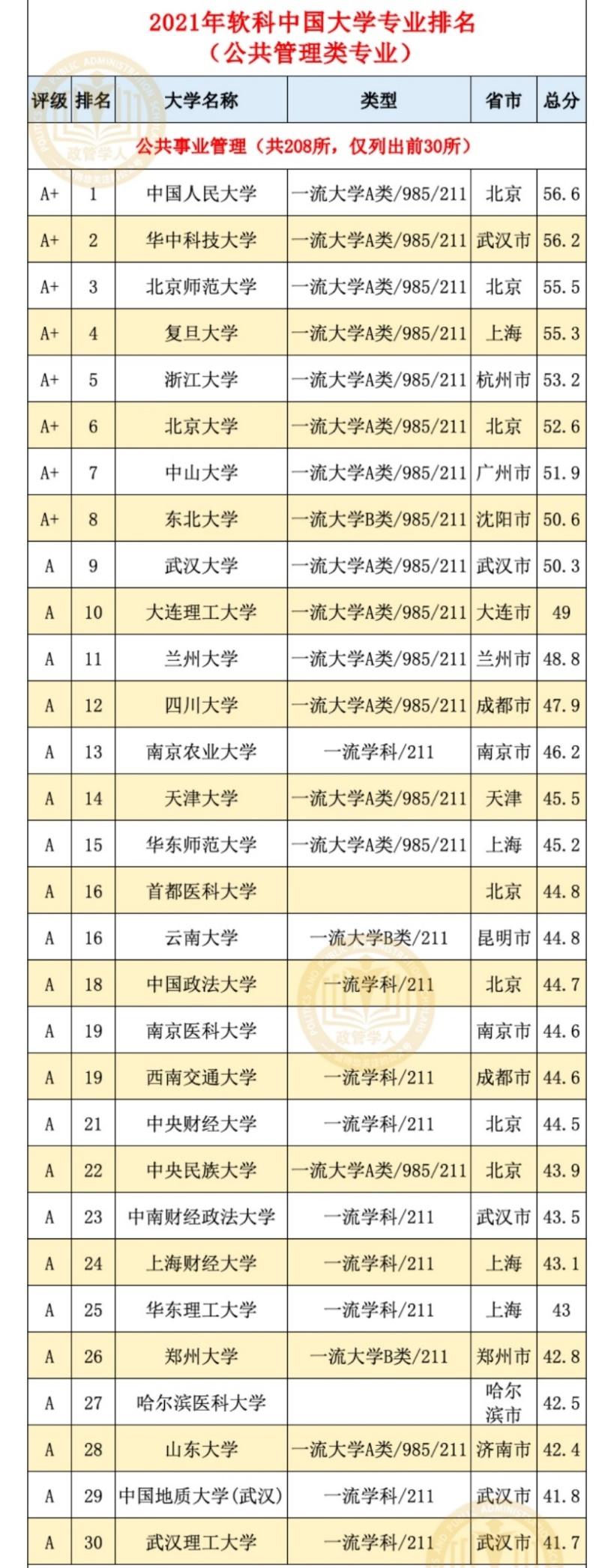 日前,软科对外发布了2021软科中国大学专业排名,太阳成行政管理、公共事业管理专业获评A类专业。这是软科首次发布针对中国内地高校本科专业的排名,也是迄今为止覆盖专业数量最多、参评专业规模最大的中国大学本科专业排名。