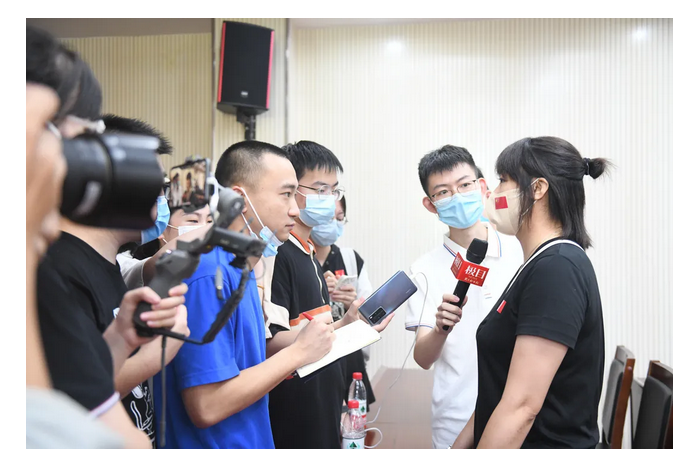 体育学院羽毛球教练邹师思接受媒体采访(摄影 张玉贤)