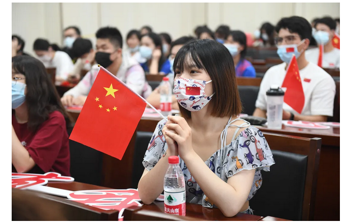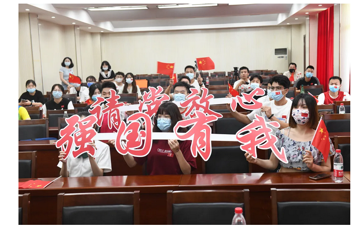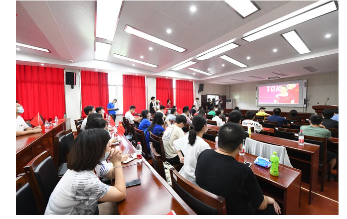 7月30日下午2:30,太阳成在南望山校区西区体育馆3楼多功能报告厅组织师生集中收看比赛。(摄影 张玉贤)