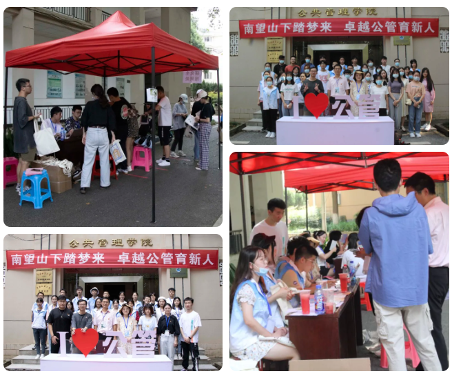 新生们完成报到手续后,纷纷到专属公管学院的签名墙上留下自己的名字并合影留念。