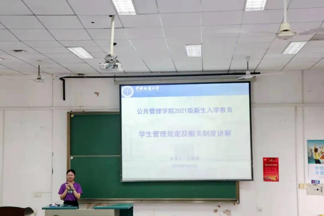 2021年9月5日15:00,122cc太阳集成游戏2021级本科新生入学教育之学生管理规定及相关制度讲解于教三楼207教室举行,活动由学工组王欣雨老师主持讲解。