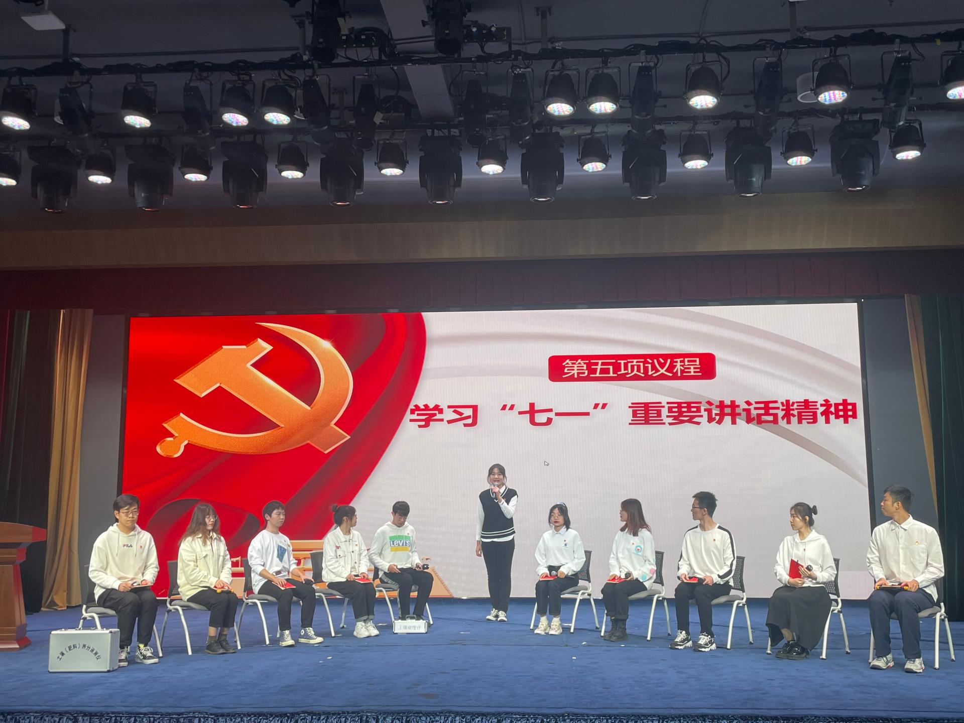 第一环节由邱宇莹同志以《讲问观论 走深走实》为题进行3分钟的特色经验分享PPT汇报。该支部通过“讲、问、观、论”四种形式开展特色活动:“讲”即通过讲述红色经典、红色党课、红色故事,在红色艺术氛围中学习党史;“问”即通过开展成员间的交流问答,推进党的理论知识学习;“观”即通过参观红色展馆、观看红色电影等,缅怀先烈、传承精神,打造体验式学习;“论”即通过定期开展读书、观影感悟分享会,推进理论学习教育深入开展。