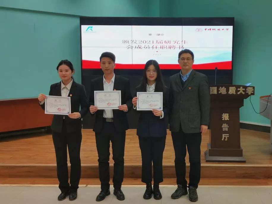 学院党委副书记刘国华老师为2021届研会主席团颁发任职聘书