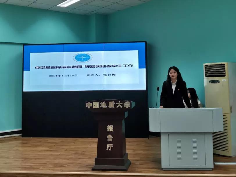 首先,由2021届学院研究生会主席团成员张歌同学向大会作2021年研究生会工作报告,从思想引领、内部建设、服务同学三个方面介绍了2021年公管研会工作成果,分析了研会继续前行存在的问题与挑战,在回应痛点的基础上,做出2022年公管研会工作的展望与规划。