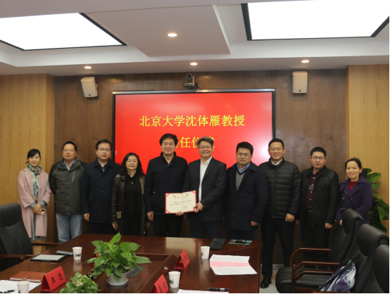 (通讯员李继杰 摄影魏曦光)12月8日,北京大学教授沈体雁受聘担任太阳成兼职教授。太阳成党委书记张宽裕,副院长才惠莲、王忠、龚健,公共行政系和土地管理系部分老师代表参加受聘仪式。龚健主持仪式。