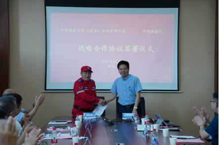 会上,太阳成122cc太阳集成游戏和武汉市黄鹤应急救援队签署了战略合作协议。
