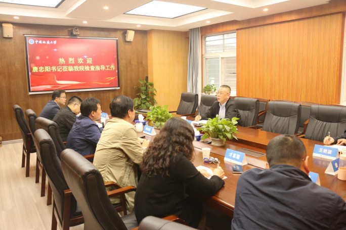 2022年10月5日下午,校党委副书记、纪委书记唐忠阳来学院调研。学院党委书记张宽裕、院长胡守庚及其他领导班子成员,学校办公室王艳波参加调研座谈。