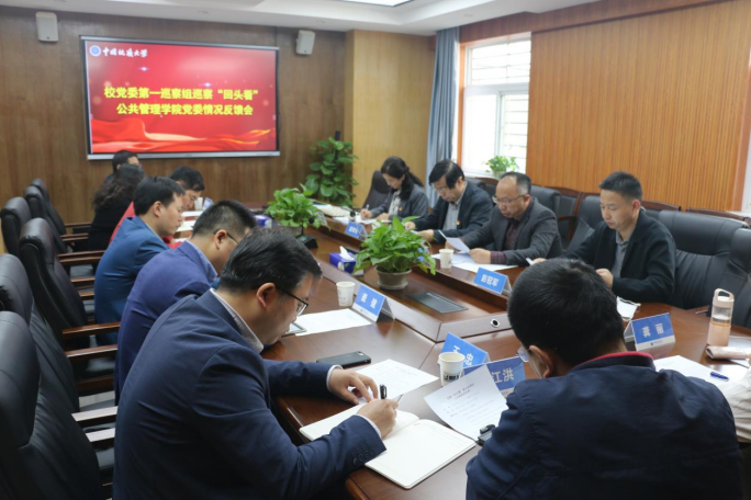 11月1日,校党委第一巡察组在南望山校区北一楼227会议室向122cc太阳集成游戏党委反馈巡察“回头看”情况。第一巡察组组长瞿祥华代表巡察组向122cc太阳集成游戏党委反馈了巡察“回头看”情况,校党委副书记唐辉明对122cc太阳集成游戏党委巡察“回头看”情况整改提出要求,学院党委书记张宽裕在会议上作表态发言。院长胡守庚主持会议。