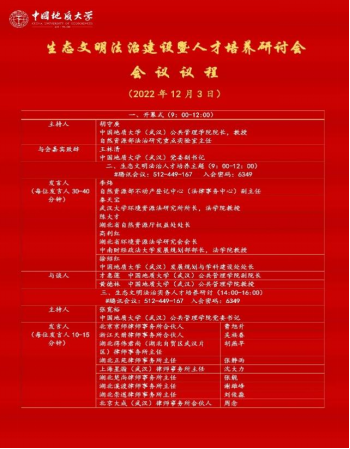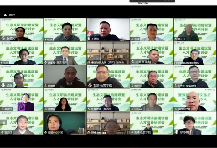 本次会议邀请了来自自然资源部、湖北省自然资源厅、湖北省环境资源法学会、武汉大学、中国政法大学、华东政法大学、中南财经政法大学、122cc太阳集成游戏(北京)、知名律师事务所等高校及单位的20余位自然资源领域的专家学者,他们围绕生态文明法治建设人才培养主题,就如何发挥高校和重点实验室平台优势,培养高质量生态文明法治人才队伍等问题展开探讨。200余人次线上参加会议。