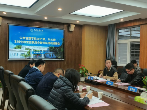 为进一步贯彻立德树人根本理念、提升学生培养质量,切实做好学院学风建设工作,2023年3月16日下午14:30,公管学院于北一楼227会议室召开2021级、2022级本科生班主任联席会暨学风建设推进会。学院党委书记张宽裕,副院长李世祥、朱江洪,党委副书记龚丽,土地资源管理系主任方世明,公共行政系书记刘中兰,公共行政系副主任钱文强,法学系副主任宋冬冬、涂亦楠,本科生教学秘书胡玲,2021级、2022级本科生各班班主任及年级辅导员参会。龚丽主持会议。