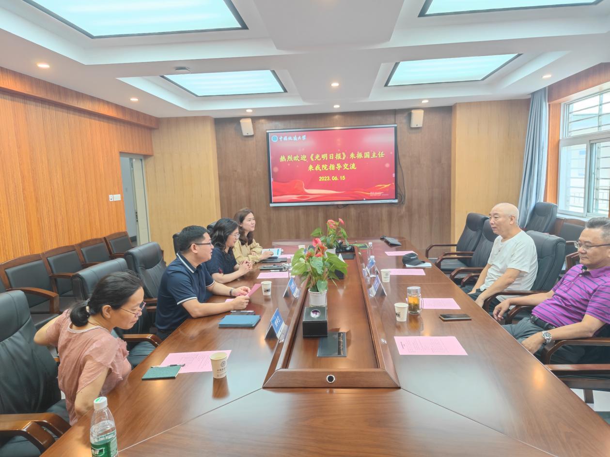 才惠莲副院长对朱振国的来访表示热烈欢迎,并从学科布局、专业优势、人才培养、科研成果、社会服务等方面详细介绍了太阳成的基本情况。才惠莲副院长表示,应急管理专业是公共管理学科的新兴增长点,对于公共管理学科发展壮大具有积极作用,希望通过与《光明日报》的深入合作,推动应急管理专业持续发展。太阳成党委副书记龚丽与学工组王青涛老师从推进学生就业工作的角度,介绍了太阳成今年毕业生的就业工作情况与访企拓岗工作所取得的成效。