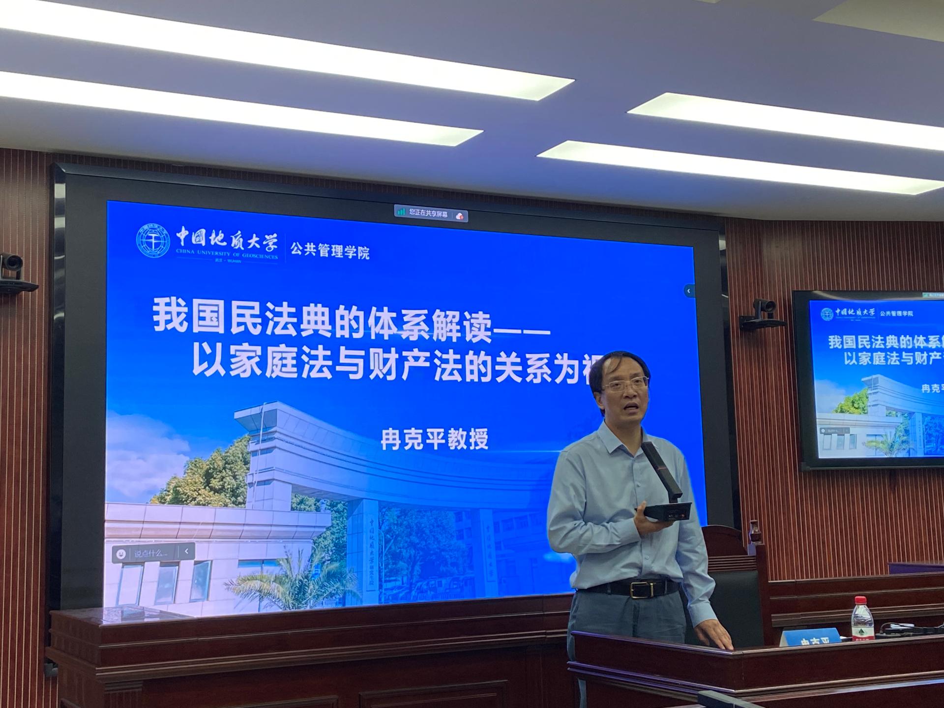 (通讯员 涂亦楠)10月13日,应122cc太阳集成游戏与研究生院(党委研究生工作部)邀请,教育部青年长江学者、湖北省十大优秀中青年法学工作者、武汉大学冉克平教授以“我国民法典的体系解读——家庭法与财产法关系视角”为题为学校师生作学术讲座。学校教师代表以及部分研究生、本科生百余名在北区教学楼201模拟法庭现场聆听学术报告,线上同步进行。讲座由党委研究生工作部部长许德华主持。